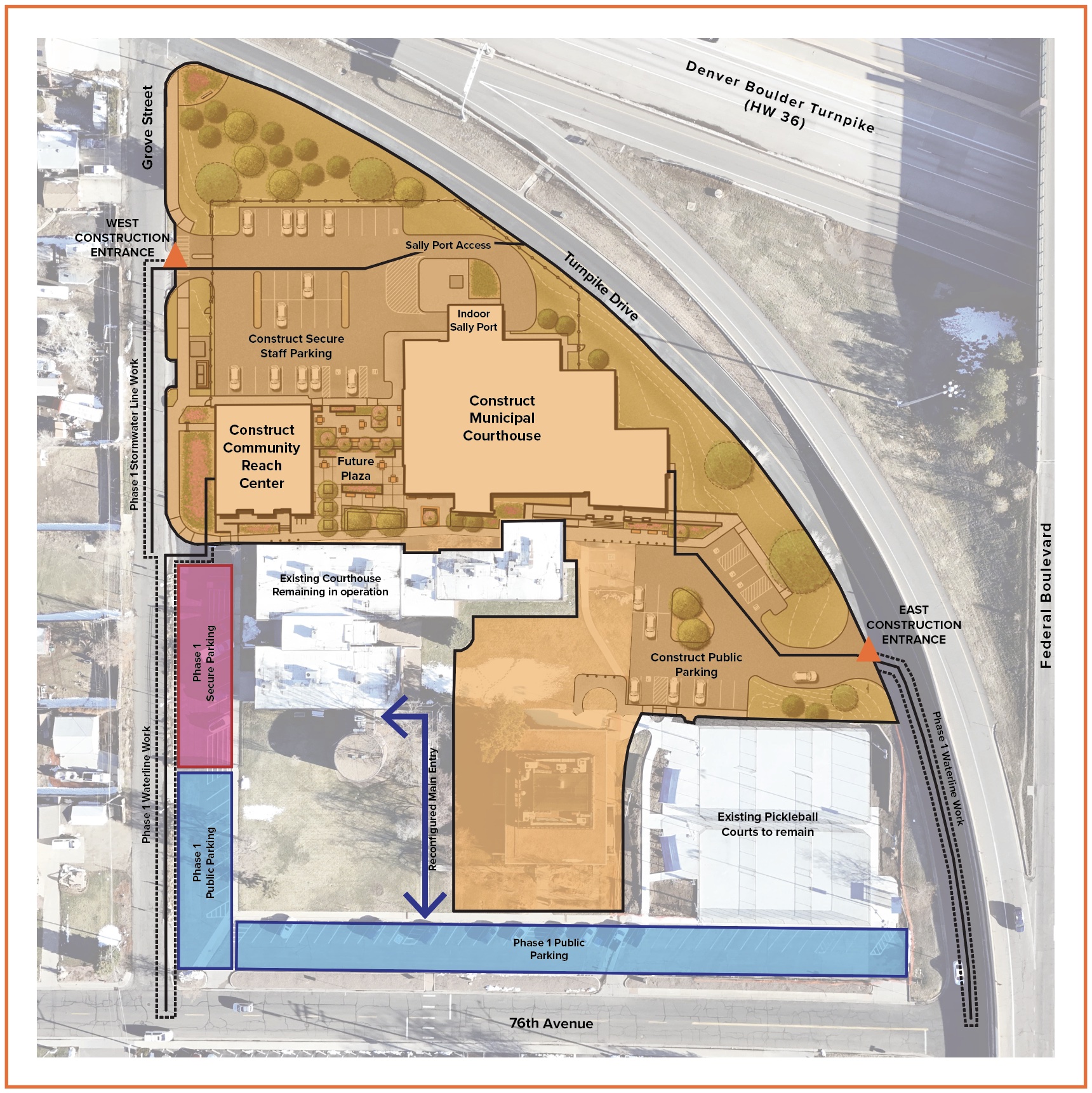• Court operations, such as jury duty, summons, proceedings, and payments, will continue in the current courthouse while the new building is constructed.